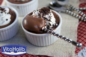 في كسرول علي النار هادئة، يوضع 1 و 1/2 كأس من الحليب مع السكر و الكاكاو و يخلط و يترك علي النار حتي يسخن و لا يغلي .